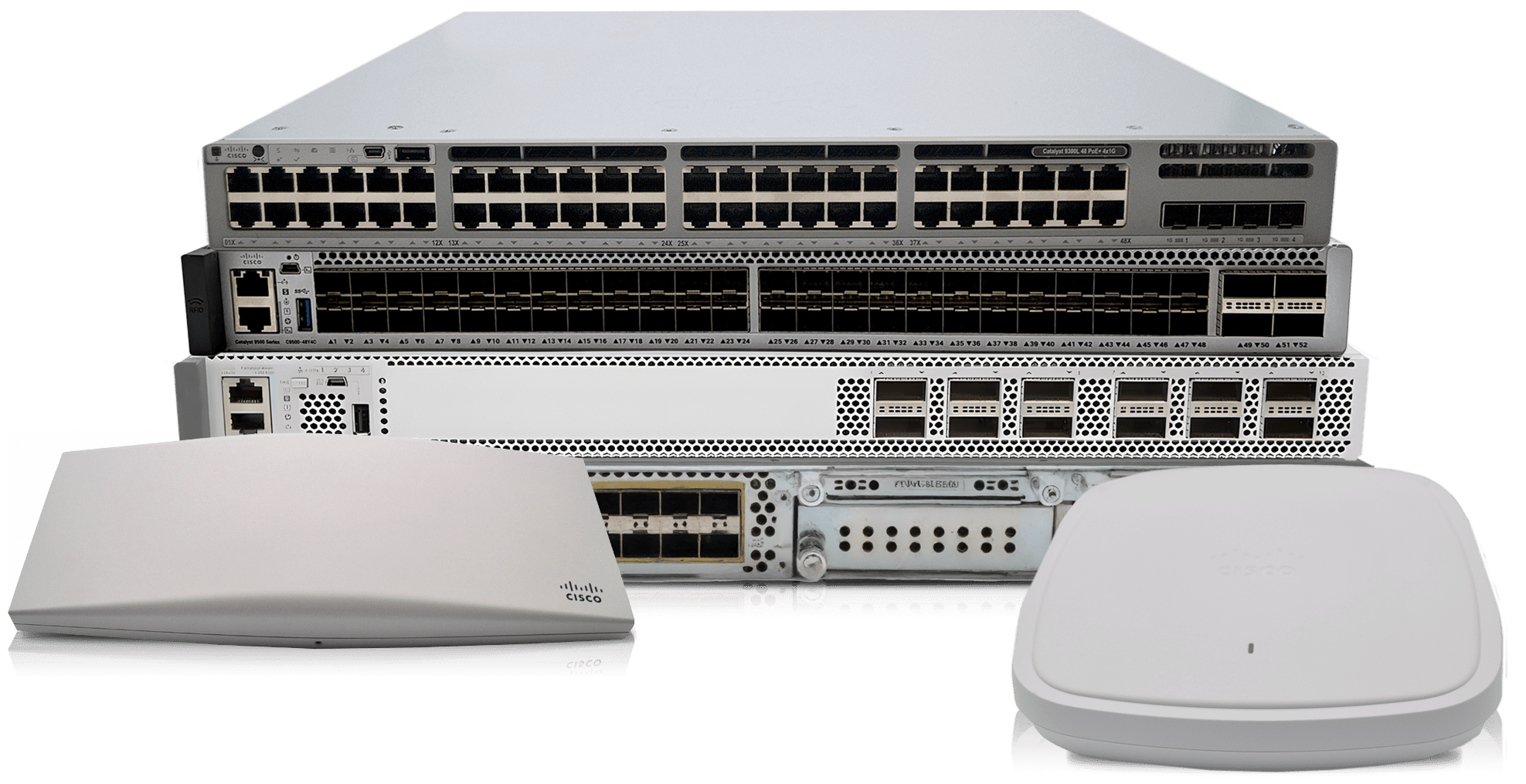 Cisco wired networking products deliver the speed, stability, and security required for everything from everyday workspace connectivity to mission-critical applications. Cisco’s enterprise-class switches provide high-bandwidth connectivity, advanced security, and network visibility for the modern enterprise. With Trifecta’s 5-Star Certified Used and Pre-Owned Cisco wired products, you gain all the performance and reliability of new hardware—without the OEM price tag. Trifecta’s certified used Cisco solutions let you optimize your budget, maintain uptime, and build a stronger network infrastructure with confidence.