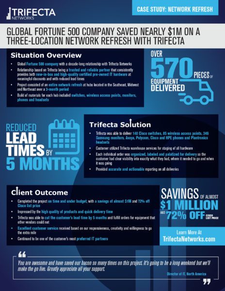 Global Fortune 500 Company Saved Nearly $1M on a Three-Location Network Refresh with Trifecta