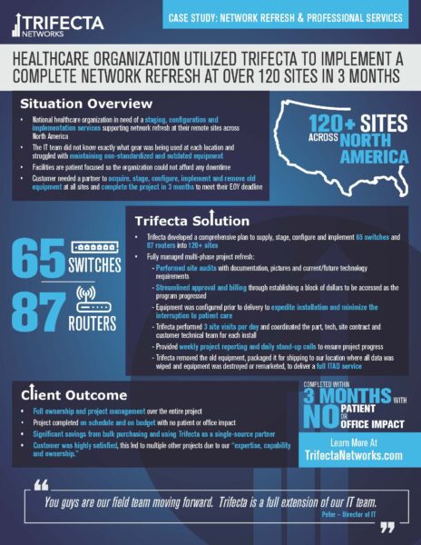 Healthcare Organization Utilized Trifecta to Implement a Complete Network Refresh at Over 120 Sites in 3 Months